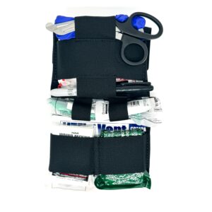 The Compact Trauma Kit or C.T.K. for short, is the newest edition to the F-M-D line up. Designed with the essential medical gear to cover most traumatic injuries you may encounter while on the range, on duty, or out training. This is our smallest BERRY compliant bag and fits great on a gun belt, battle belt, or your war belt. These kits aren’t limited to a belt though, they would also be great for a headrest or backpack first aid kit. This IFAK medical kit is the perfect balance between a full medical kit and just the essentials of an IFAK trauma kit. The contents are easily deployed via a Velcro pull tab which reveals an interior pull bag. Contents are neatly organized with multiple elastic loops. CAT TQ is bungeed to the exterior of the pack for easy and fast deployment.
